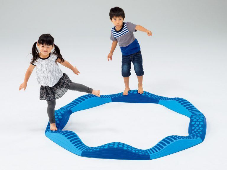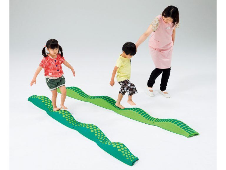 子ども達のバランス感覚や運動能力を養う為に重要な平均台遊びに、さらに緩やかな傾斜をつけ遊びの要素を高めた運動遊具です。接続部分に角度がついている為、様々な方向でつなぎ合わせることで円形やS字など自由な形状に設置することが出来ます。表面と裏面にゴム製の滑り止めが付いているので安全に遊べます。使用しない時は重ねてコンパクトに収納可能で、付属のバッグにも収納できます。 (尚写真は2個での利用の写真となっています)